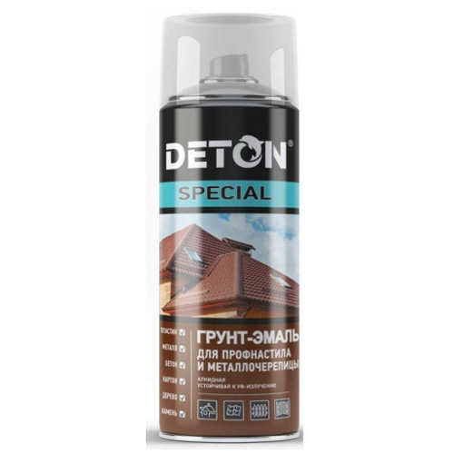 Грунт-эмаль аэрозоль, металлочереп/профнастил. шоколад-корич, 520 мл, Deton Spesial RAL8017