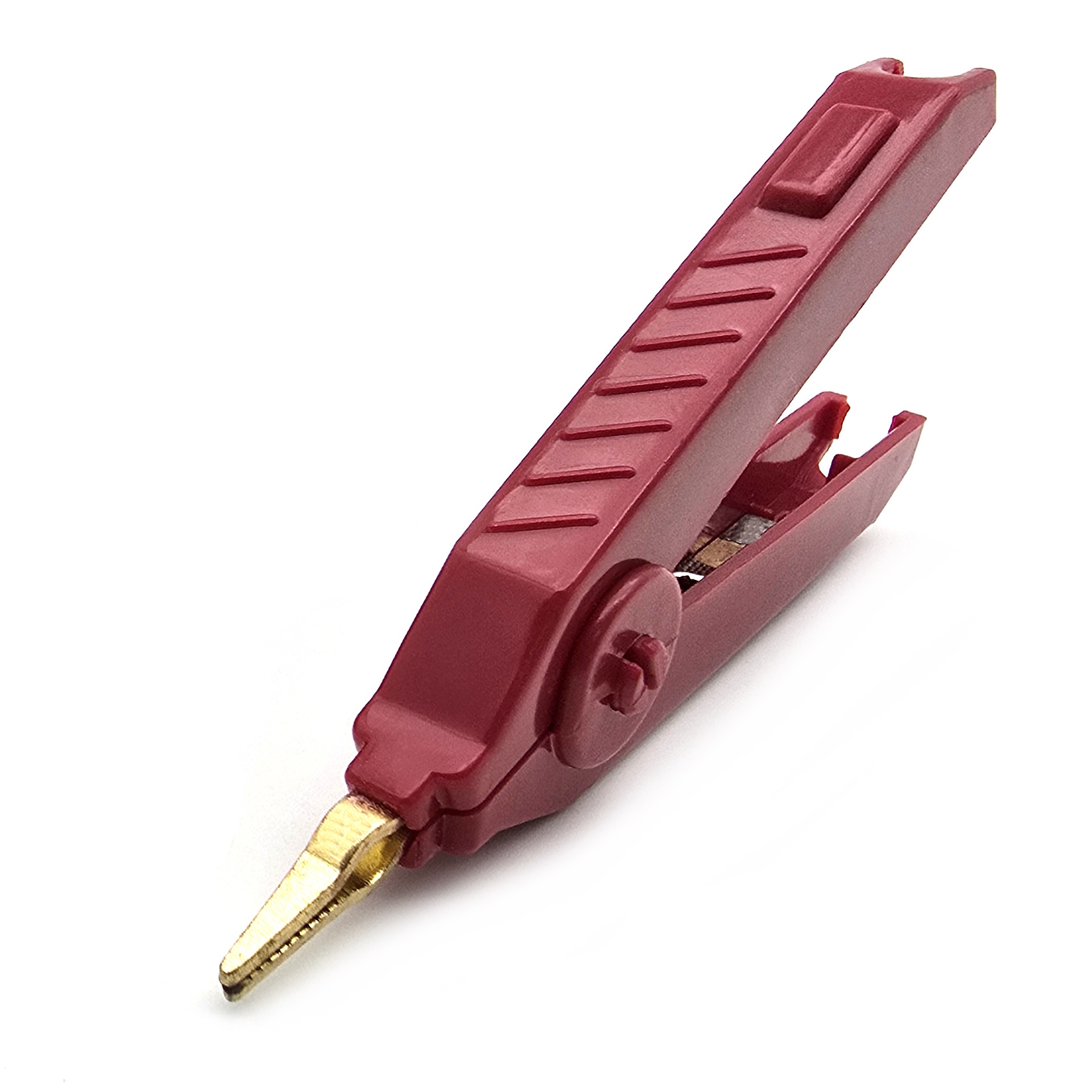 Зажим-Крокодил Кельвина, медь 90мм, 20А, для точных замеров, красный