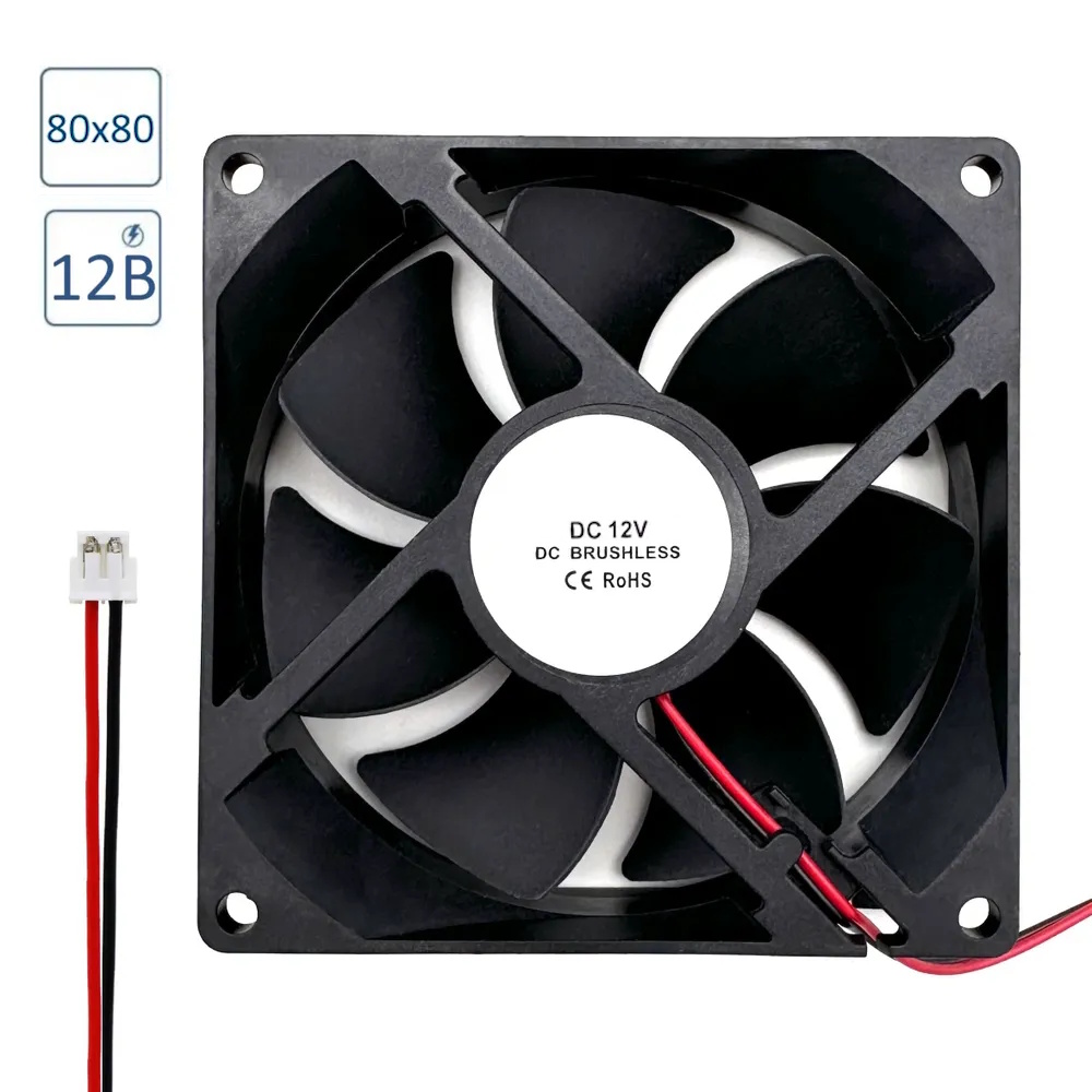 Вентилятор 80x80x25, 12В DC, разъем 2Pin, гнездо 2,54мм