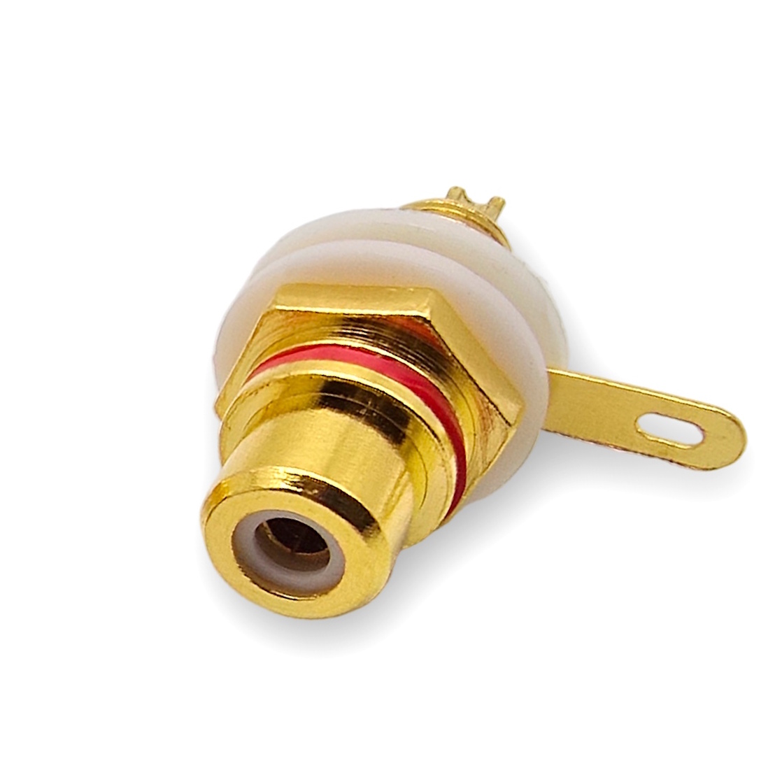 Гнездо RCA metal-gold (бол) в корпус красная полоса