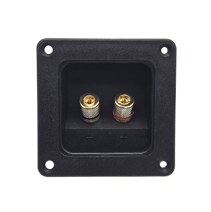 Терминал акустических колонок 75*75 мм, 2 металлических гнезда "банан" золото