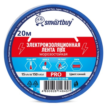 Изолента Smartbuy Pro, 0.15х15мм, 20 метров, синяя морозостойкая (SBE-IT-15-15-20-db)