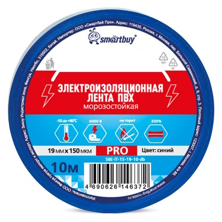 Изолента Smartbuy Pro, 0.15х19мм, 10 метров, синяя морозостойкая (SBE-IT-15-19-10-db)