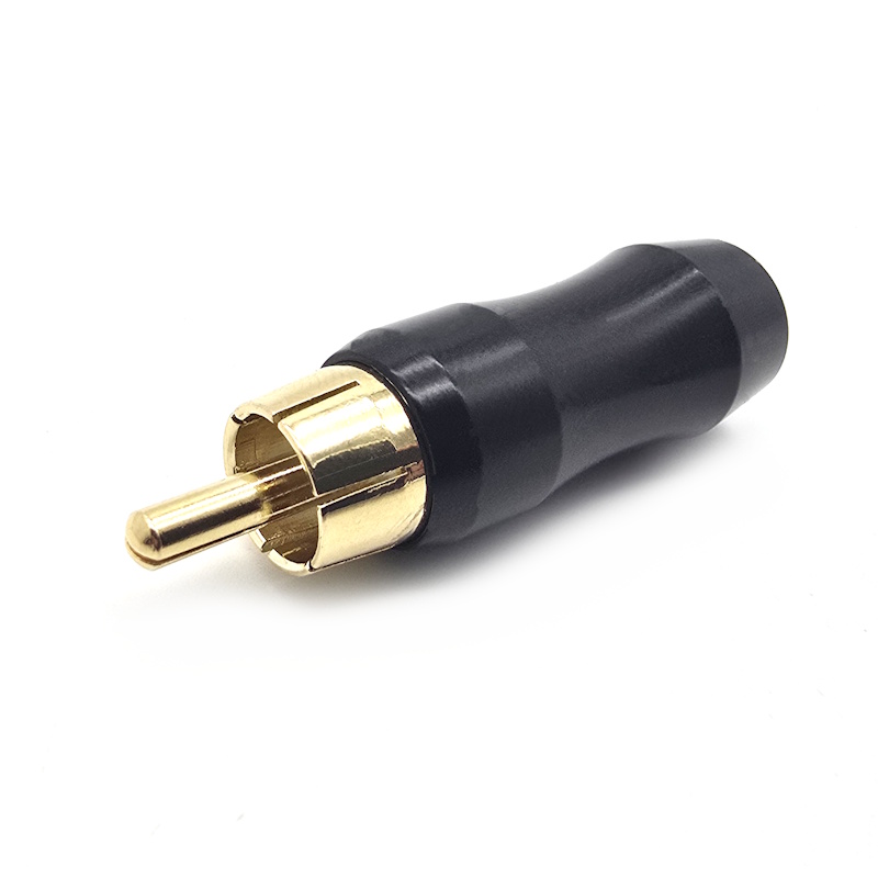 Штекер RCA тюльпан металл, L=45мм, под пайку, выход 5мм, черный корпус