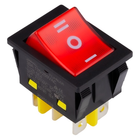 Клавишный переключатель 6pin ON-OFF-ON, 250В 32А с подсветкой и нейтралью красный SmartBuy (SBE-32-S32r)