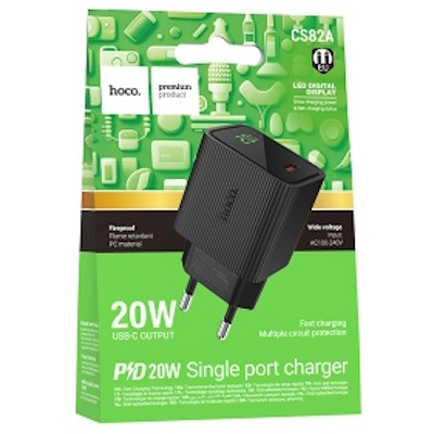 СЗУ на PD (гнездо Type-C) HOCO CS82A, QC3.0, PD20Вт, с LED-дисплеем, черный