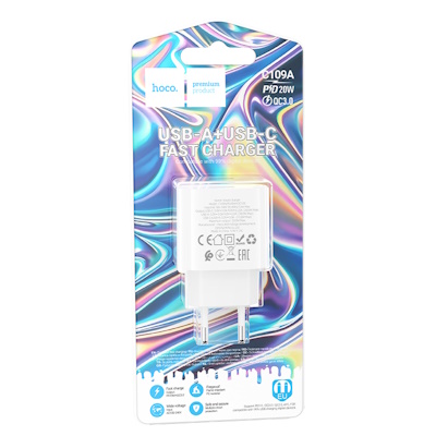 СЗУ на PD+ USB HOCO C109A 3.0A PD 20W+QC3.0 быстрая зарядка белый