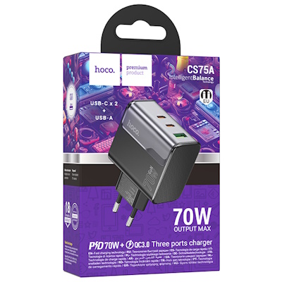 СЗУ на 2PD+ USB HOCO CS75A, PD70W, чёрный
