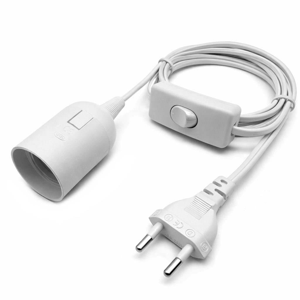 Шнур сетевой 2х0.75мм² с проходным выключателем, патрон Е27, 1.8м, белый B2-18 РУЭЛ