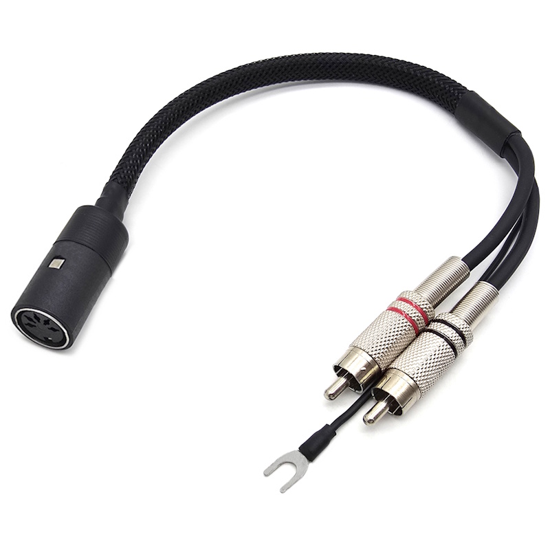 Кабель аудио DIN 5 pin - 2RCA гнездо - 2 штекера + заземление, 0,25м, пружина антизалом, ART-09