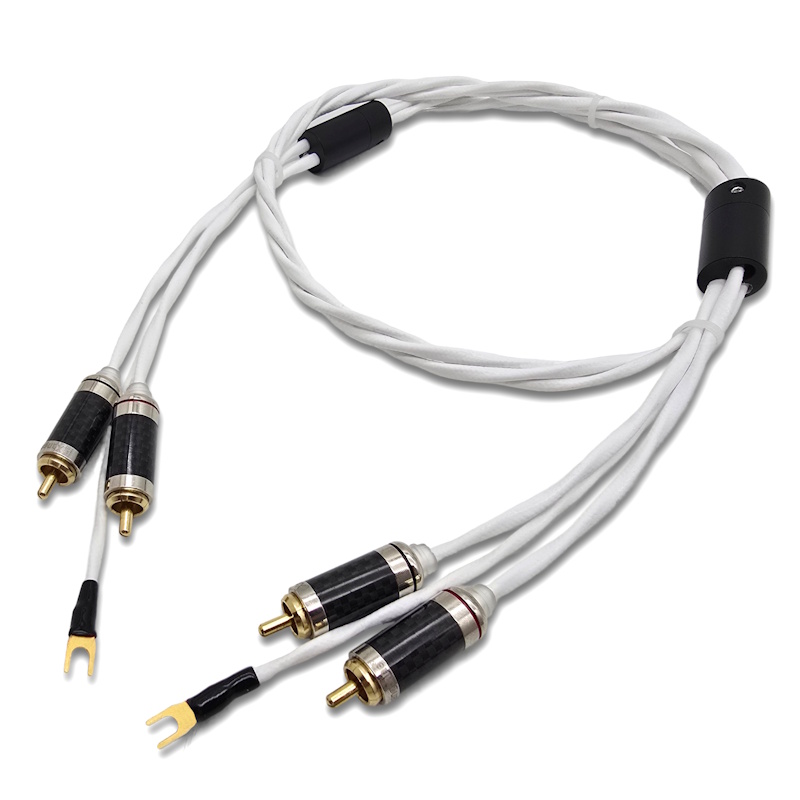 Фонокабель посеребренный, для подключения тонарма, 2RCA - 2RCA + заземляющий кабель, длина 1м